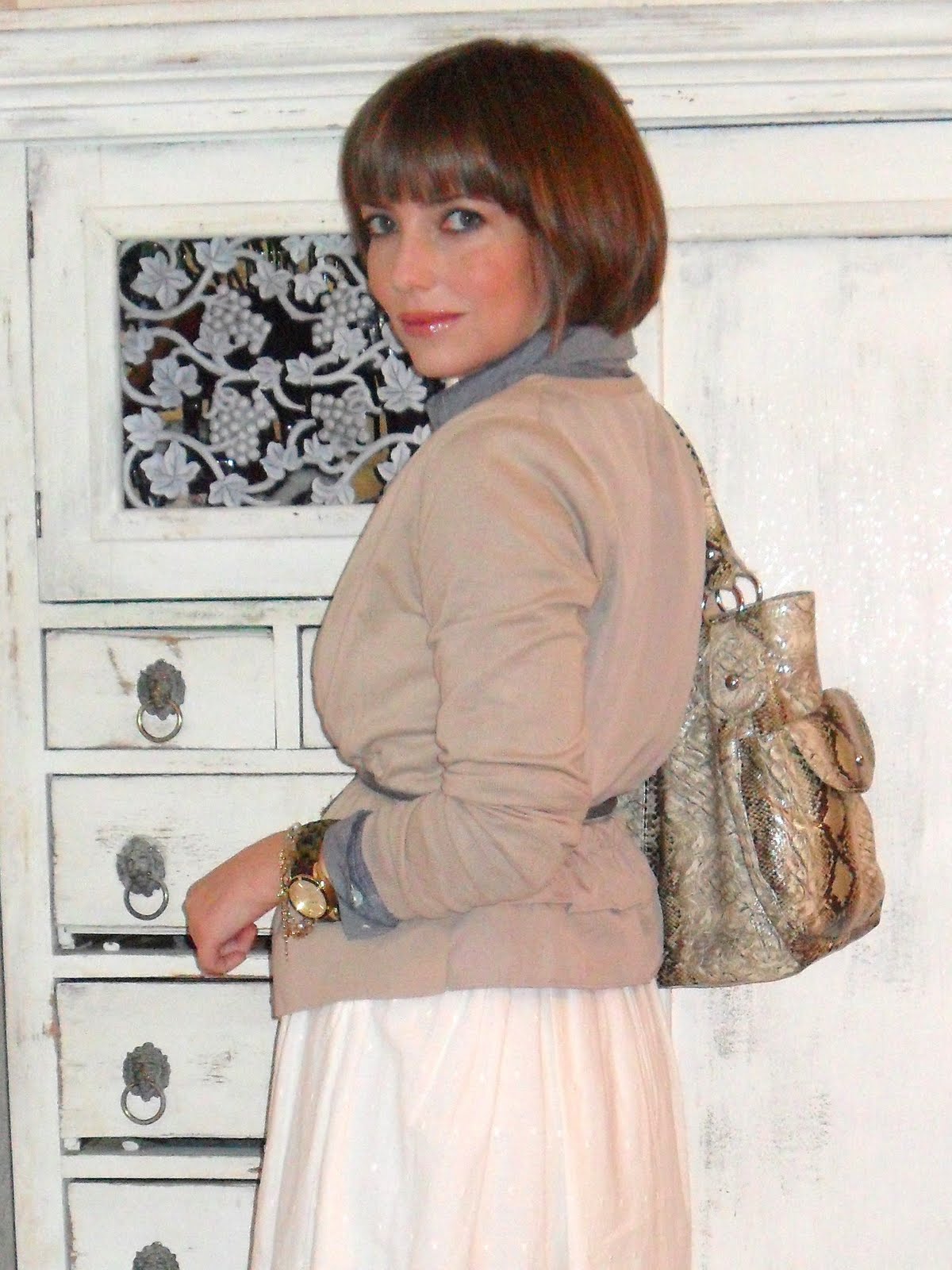 Lo and behold, this Converse Chambray Shirt is getting a lot of use! I paired it with a gorgeous H&M skirt I found on e-bay, gray Kenneth Cole Outlet bag and these amazing Sofft Pavia Peep toes in Eggshell.